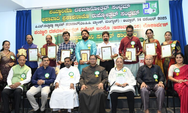 २००० इस्वेंत कुवेय्टांत सुर्वात्ल्ल्या ’आशावादी प्रकाशन’ चो रुप्यॊत्सव, तशेंच २०१५ इस्वेंत मुंबंय्त सुर्वात्ल्ल्या पय्णारि.कोम म्हळ्ळ्या तीन लिपिच्या कोंकणी साहित्यिक जाळिजाग्याचो दशमानॊत्सव अशें दोडो संभ्रम आय्तारा १४ दसेंबर) सकाळीं १० थाव्न दोन्पारां १ पर्यांत मंग्ळुर्च्या एम.सि.सि.ब्यांक्चाच्या पि.एफ.एक्स.सभांगणांत चल्लो. बस्ती वामन शेणय स्मारक २५ कोंकणी पुस्तकांचें लोकार्पण, मौल्याधारित कोंकणी पत्रिकॊध्यमाचो जिविता-आव्देचो पुरस्कार तशेंच साहित्य, कला, रंग्मंच, भरतनाट्य, समाजसॆवा शेतांनी दॆण्गी दिलेल्यांक सन्मान कार्यें आनी कन्नड लिपियेंत लिपियंतरण जाल्ल्या कोंकणिच्या पुस्तकाचो पय्लो पुरस्कार ’देवादिन डॆनिस डिकुन्हा स्मारक आशावादी लिपियंतरण पुस्तक पुरस्कार प्रधान’ हीं सर्व ह्या संभ्रमांत चल्लें.