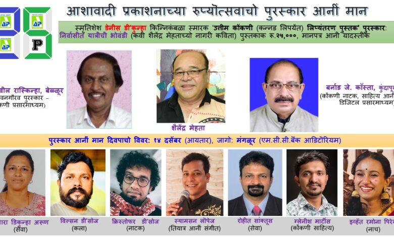 आशावादी प्रकाशनाचो रुप्या सुवाळो (२०००-२०२५) आनी पयणारी दशमान सुवाळो यादस्तीक भेटवण कोंकणी पुरस्कार जाहीर जाल्यात.