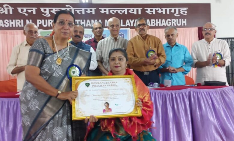 कोंकणी भाषा प्रचार सभेचे आभिमुख्यार उत्कृष्ट कोंकणी साहित्यकृतीं खातीर आसिलें “एन.एम.सरस्वती बाय पुरस्कार”, कोंकणी भाषा भवनांतु घडोंवचे सम्मेळनांतु वितरण केलें.