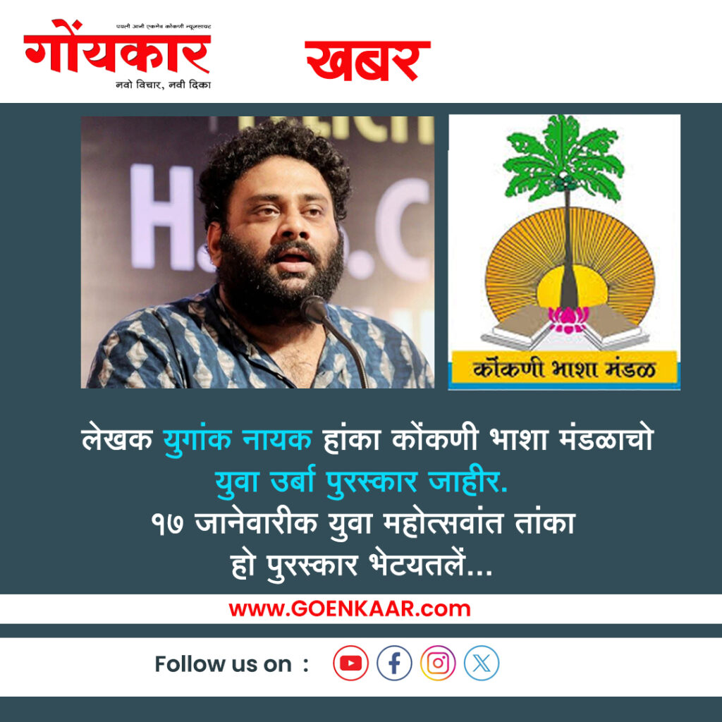 गोवा युवा महोत्सवाचे आदले कार्याध्यक्ष पुरस्कृत आनी कोंकणी भाशा मंडळ गोंय युवा उर्बा पुरस्कार कोंकणी लेखक, संघटक, आयोजक, संशोधक युगांक नायक हाका 2025 वर्साच्या पुरस्कारा खातीर निवड केली.